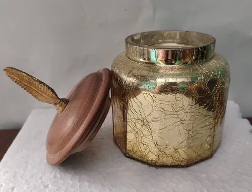 A "crackle candle jar" typically refers to a candy jar or container that has a crackled or crackle glass finish. Crackle glass is a type of decorative glassware that has a deliberate cracked or shattered appearance on the surface. This effect is achieved by cooling the glass rapidly after it is formed, causing small cracks or fissures to form.