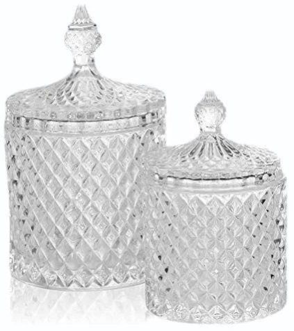 The lovely diamond cut brings the sparkle of crystal to your interior.A decorative crystal jar is an ornate container made of crystal, a high-quality and transparent type of glass. These jars are designed for both functional storage and as decorative pieces. They are often chosen for their elegance and ability to enhance the aesthetic appeal of a room.